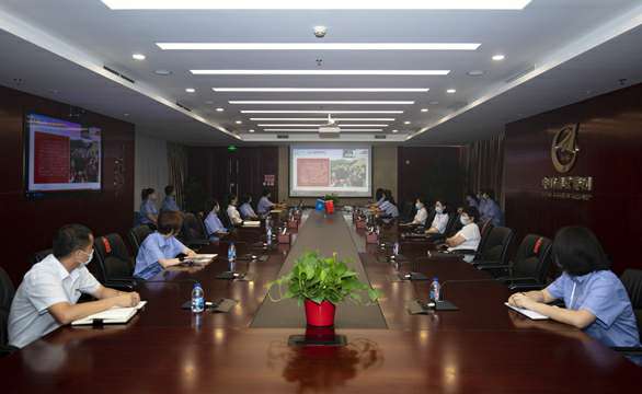 上午8时08分,主题活动以“迎七一,升国旗”仪式拉开序幕。仪式结束后,以集团多功能厅为主会场,视频会议室为分会场,各二级单位、项目部及京外单位通过网络会议系统同步收看参加了主题党课活动。